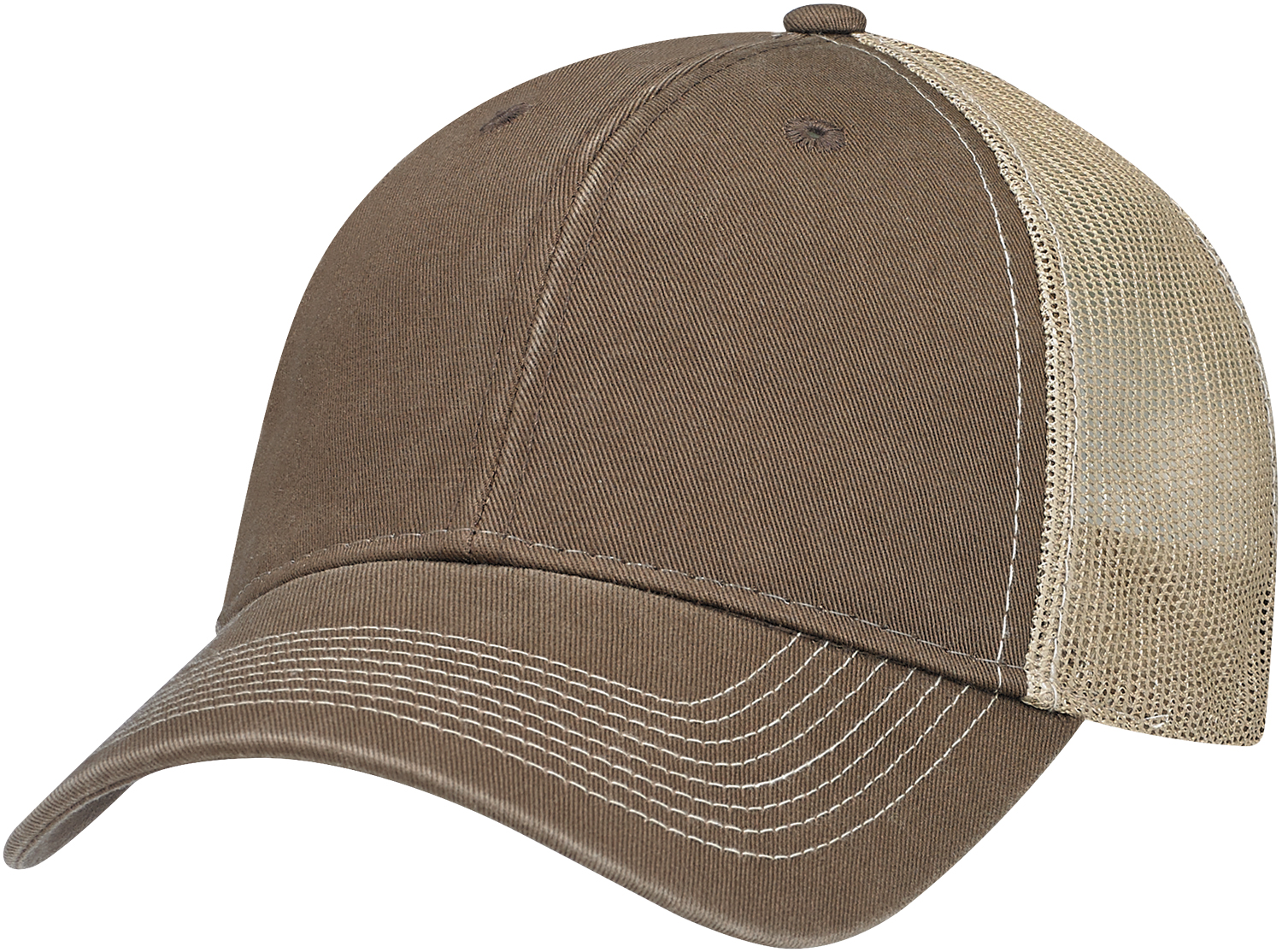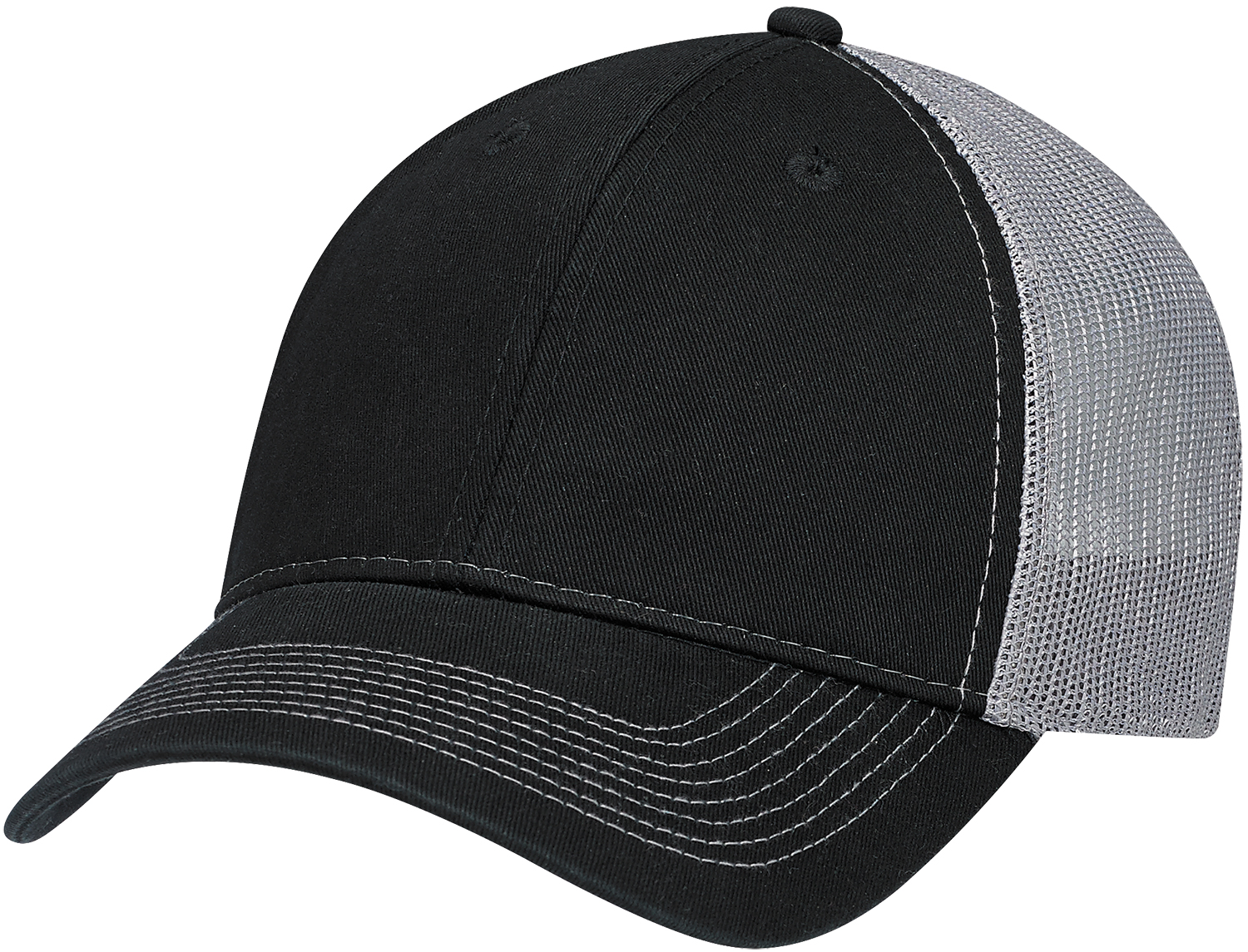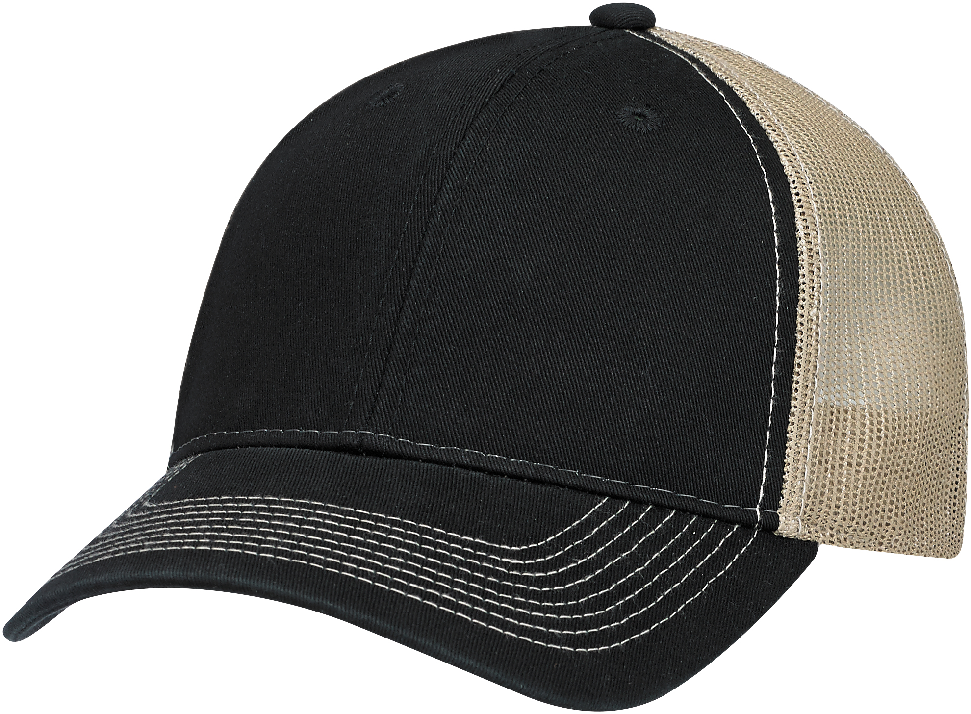 6 panel constructed full fit mesh back, pre-curved pek with 8 rows of stitching, buchram laminated front panels with pro stitch, plastic adjustable back strap