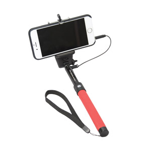 2"w x 21" long. Take great selfies wih this ruberized ABS selfie stick. Just attach your photo taking devise and plug in teh 3.5mm cable. Extend in front and press the button. No batteries or recharging required. Includes 1 colour, 1 location Imprint. Set up fee $ 55.00.