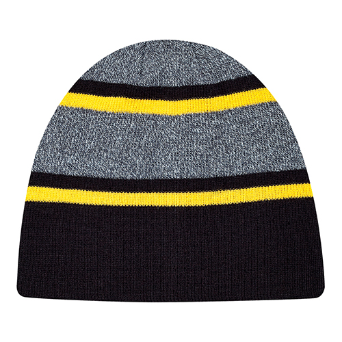 100% Acrylic toque. Marl stripe rib knit.