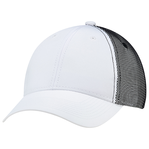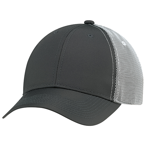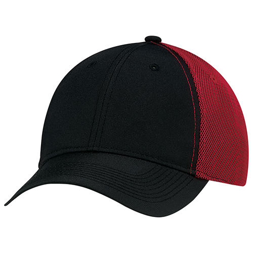 Constructed full fit, polyester rib stop and bonded mesh back. Buckram laminated front panels with pro stitch. Pre curved peak with 8 rows of stitching. Self cloth back strap with velcro closure.