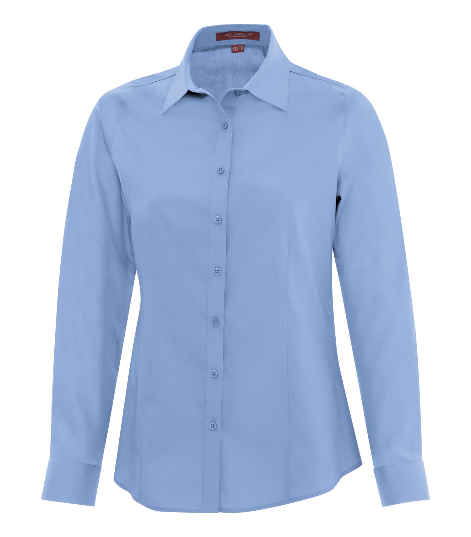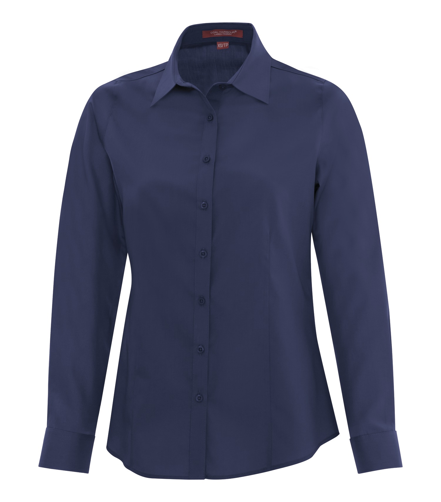 70% Polyester, 30% cotton, wrinkle free. Classic fit, left chest pocket. button down collar