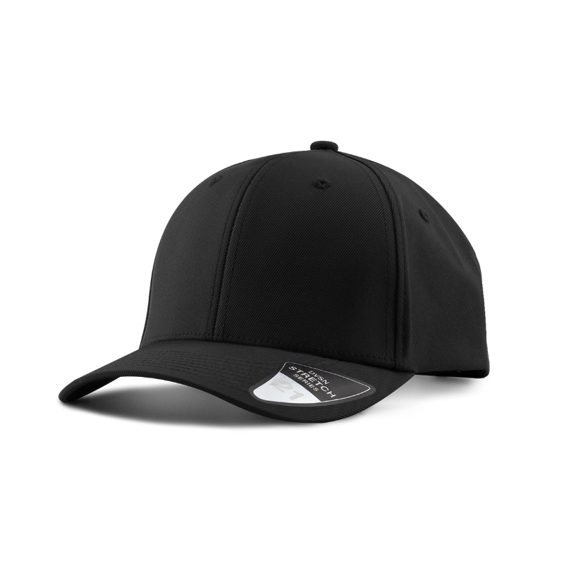 100% Polyester, mid profile, 6 panel, structured. Silicone snapback closure. Elastic stretch sweatband.